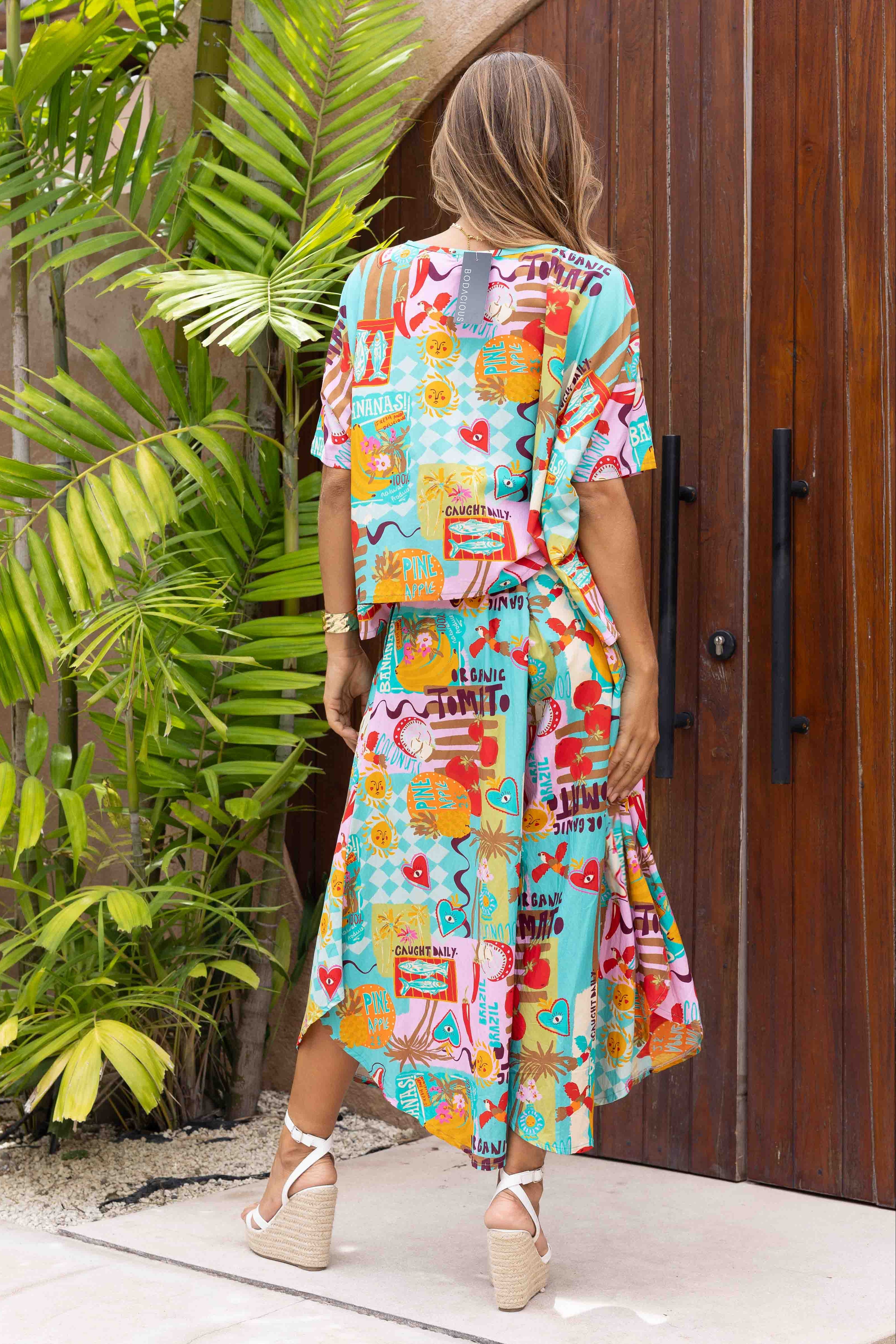 VBLP106 - SYDNEY WIDE LEG PANT - CARIBBEAN CARNIVAL