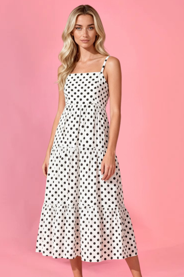 VGLD700 - ELLIE MIDI DRESS - POLKA DOT BLACK/WHITE