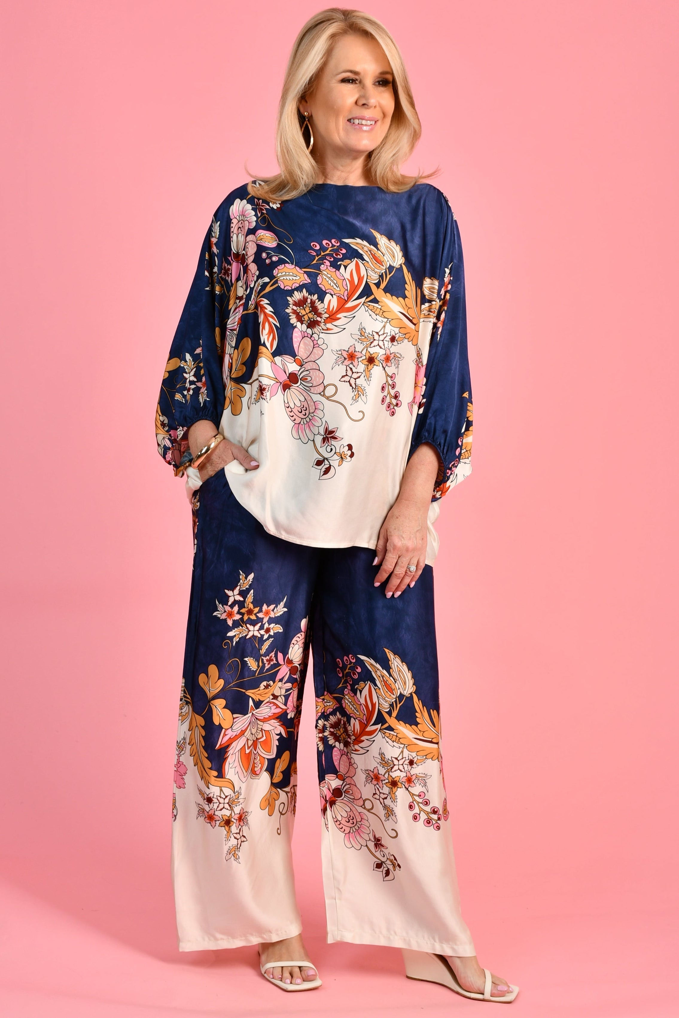 VLSP640 (6655) - LISA SILK PANT - NAVY FLORAL