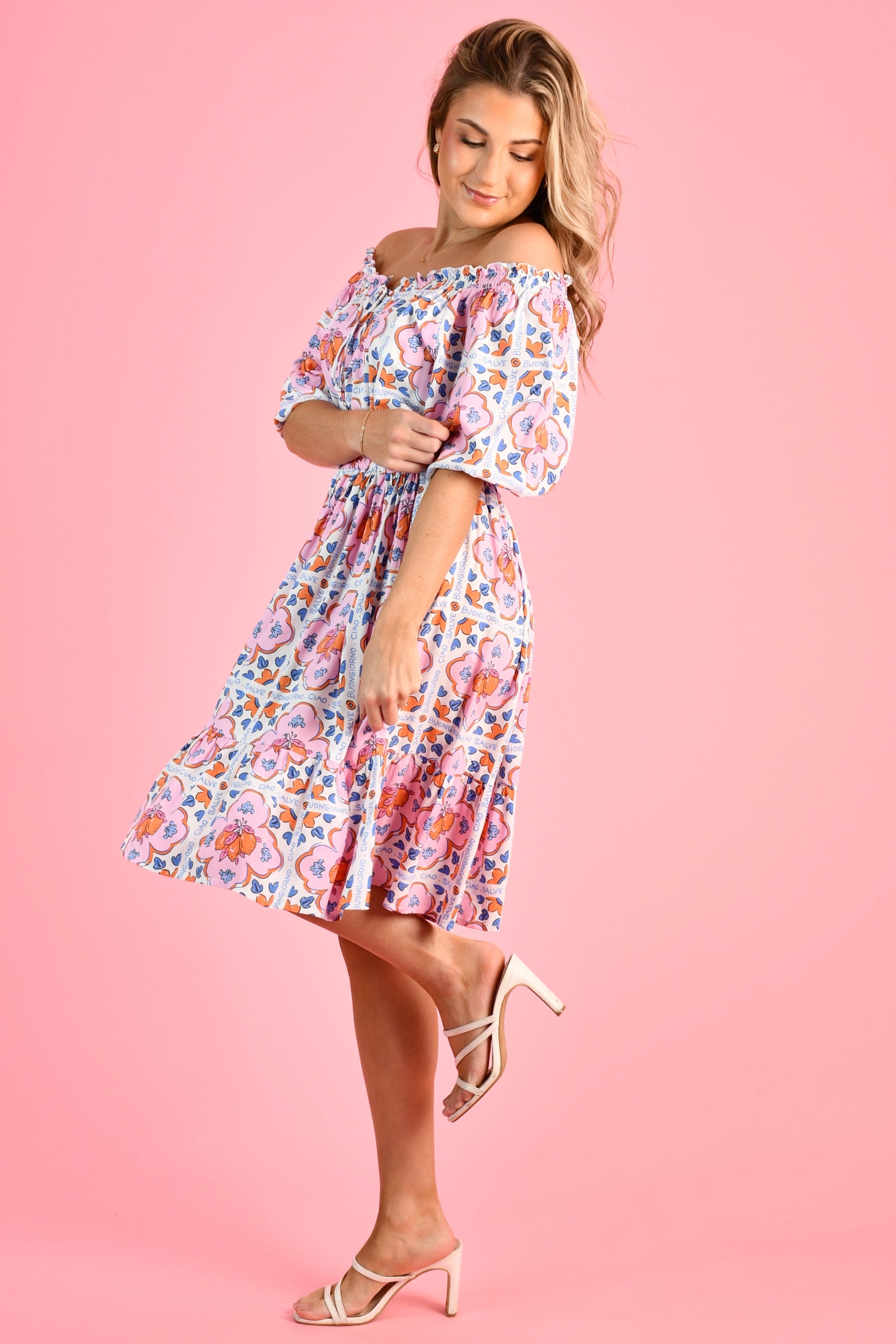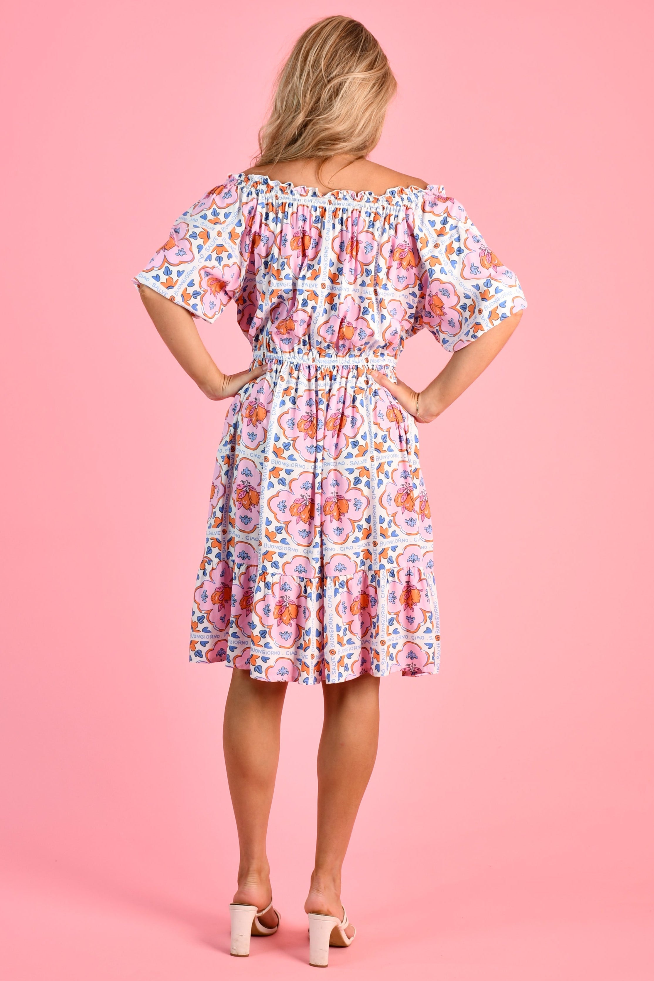 VGLD788 - EMMY DRESS - LEMON TILE BLUE/PINK