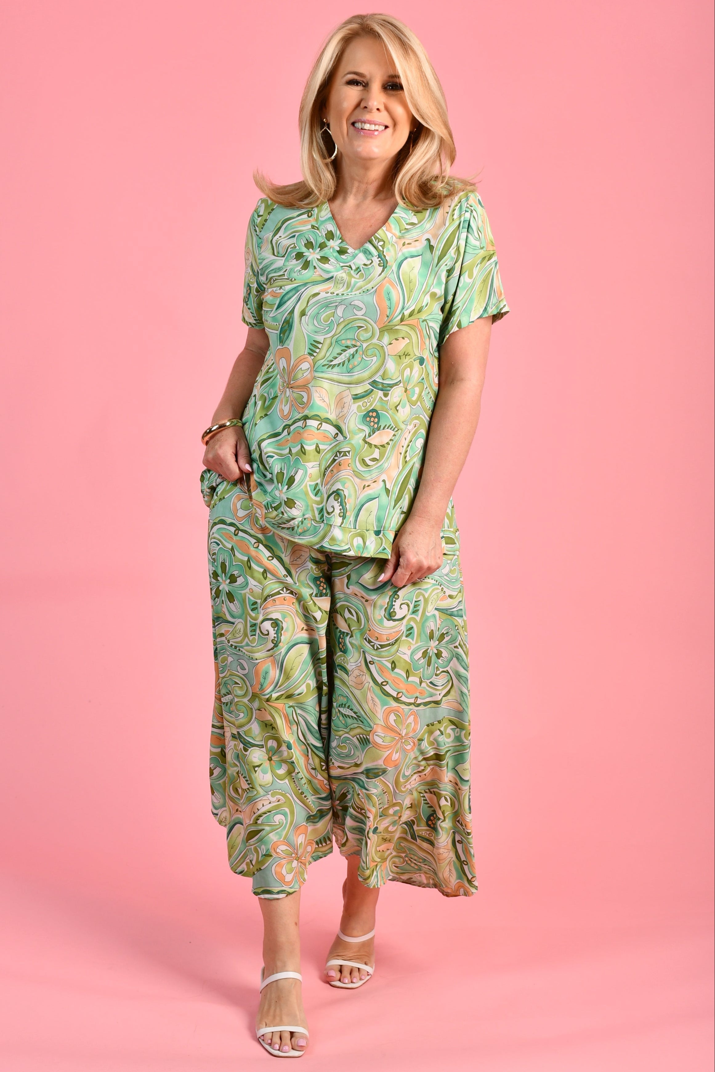 VBLT290 - LARA TOP - 70'S SWIRL GREEN