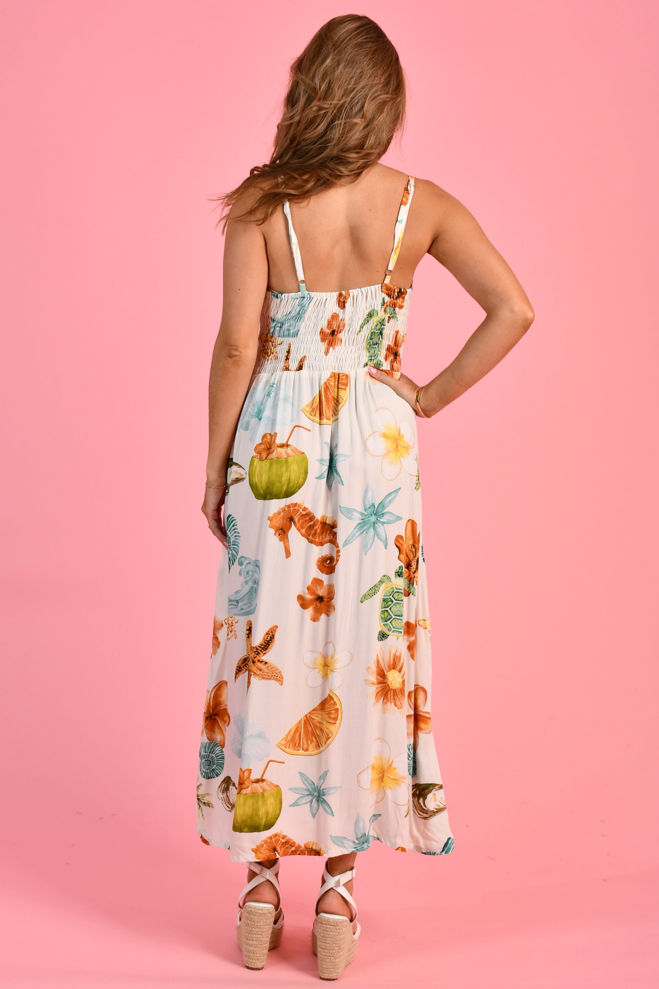 VGLD820 - TROPICAL BREEZE MAXI DRESS - OCEAN BLOOM WHITE