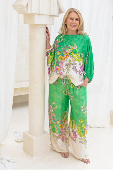 VLSP640 (6655) - LISA SILK PANTS - GREEN FLORAL