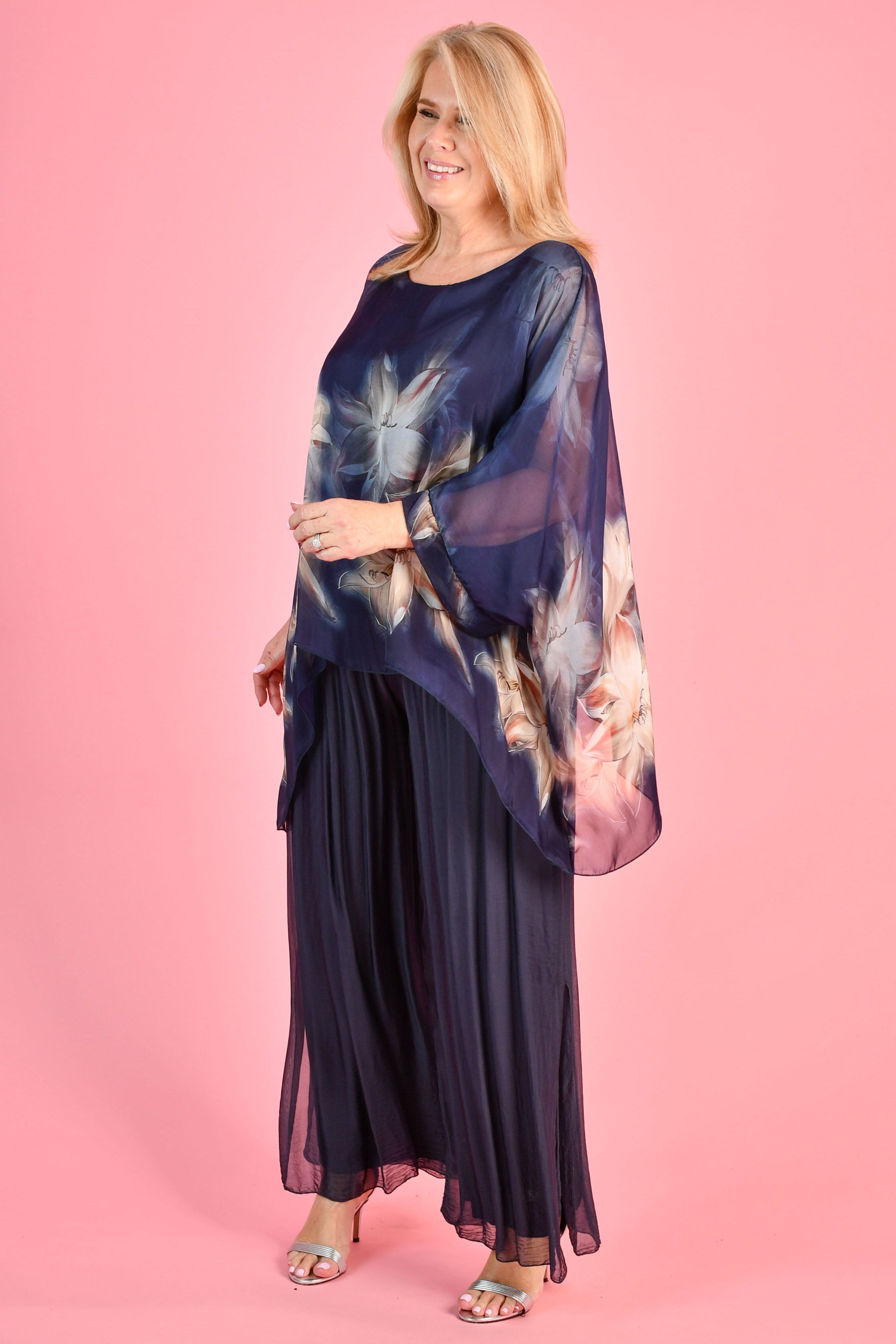 VLST722 (1003) - GABRIELLA BATWING SILK TOP - NAVY LILY