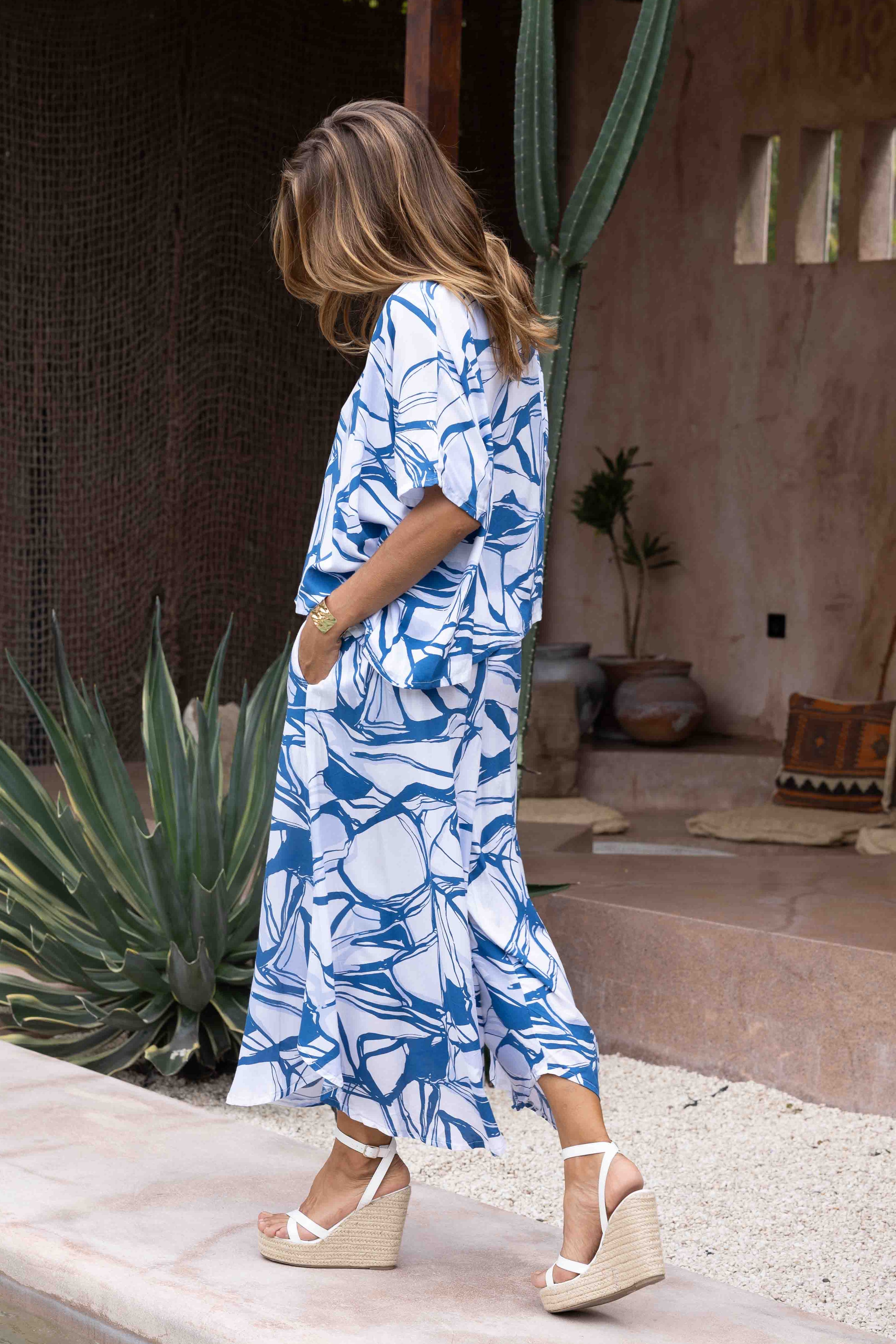 VBLP106 - SYDNEY WIDE LEG PANT - BLUE MARBLE
