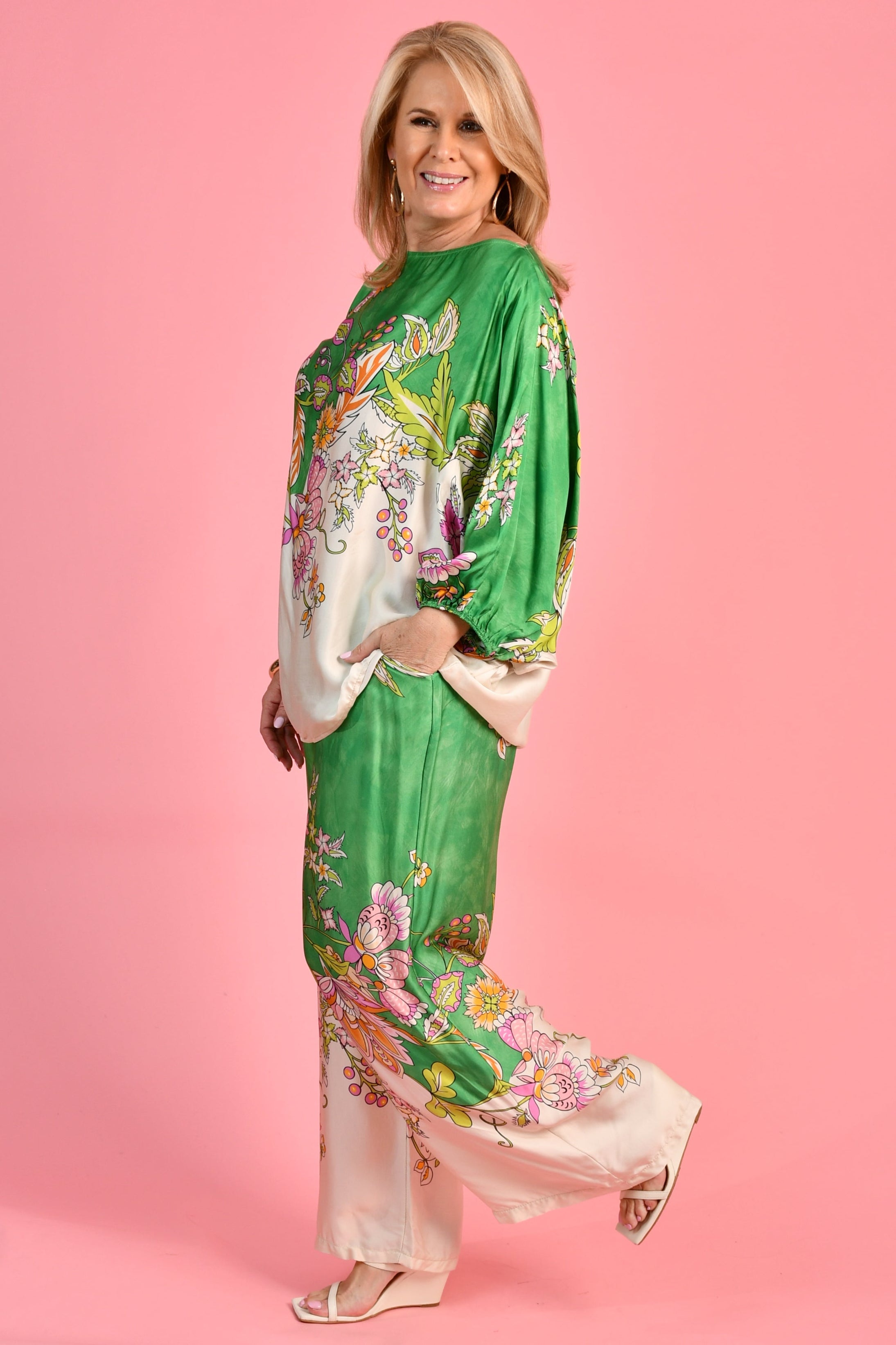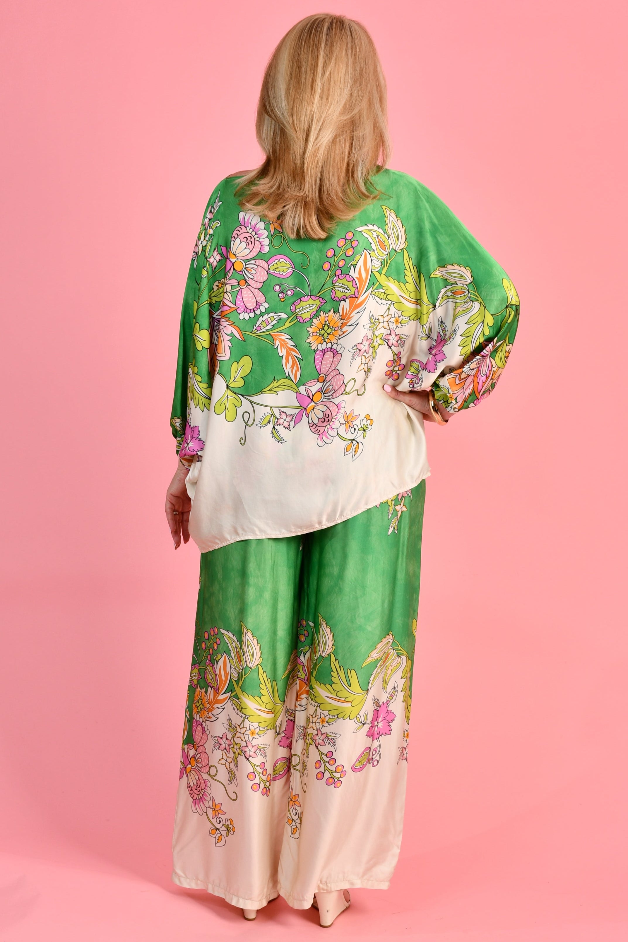 VLSP640 (6655) - LISA SILK PANTS - GREEN FLORAL