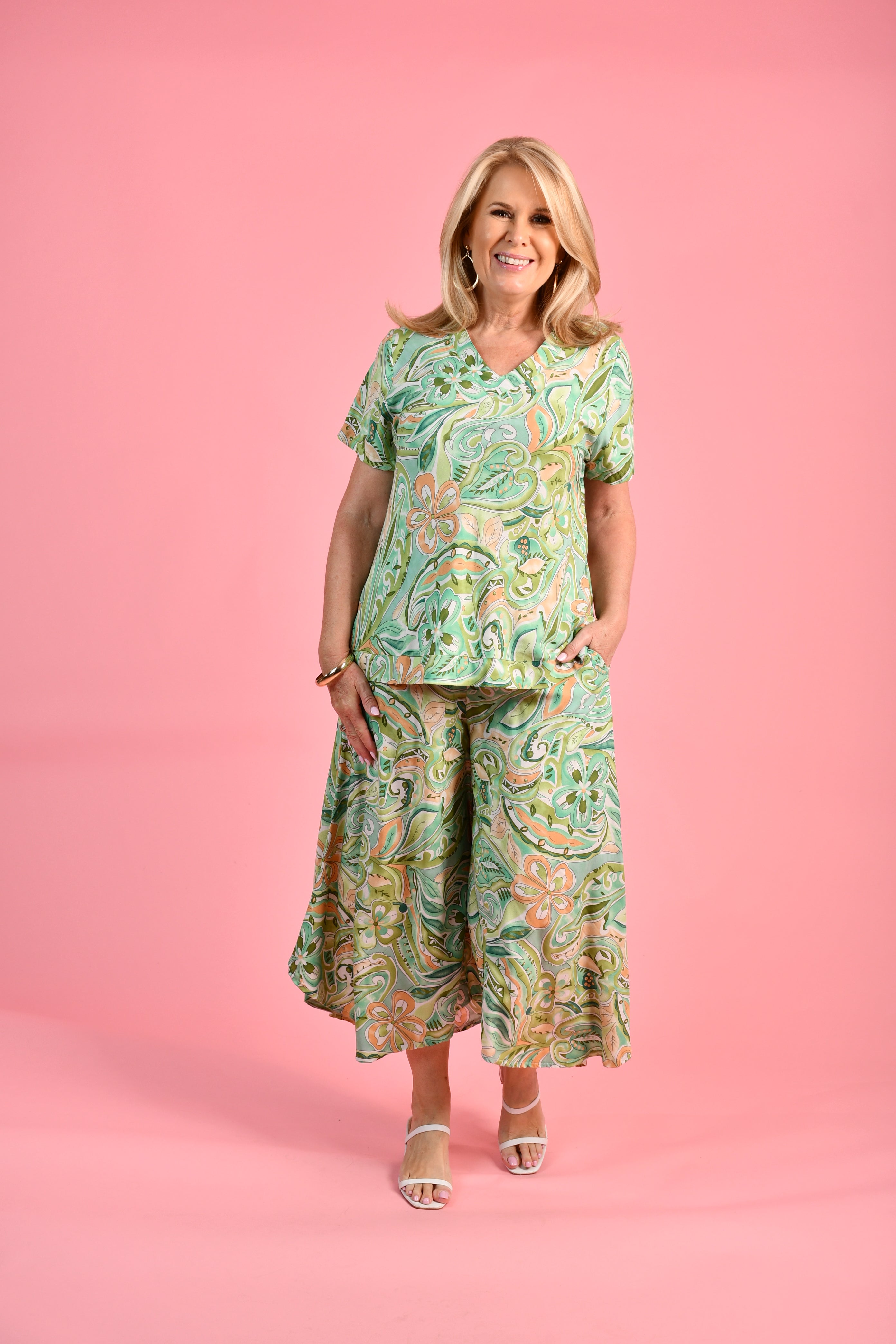 VBLP106 - SYDNEY WIDE LEG PANT - 70'S SWIRL GREEN