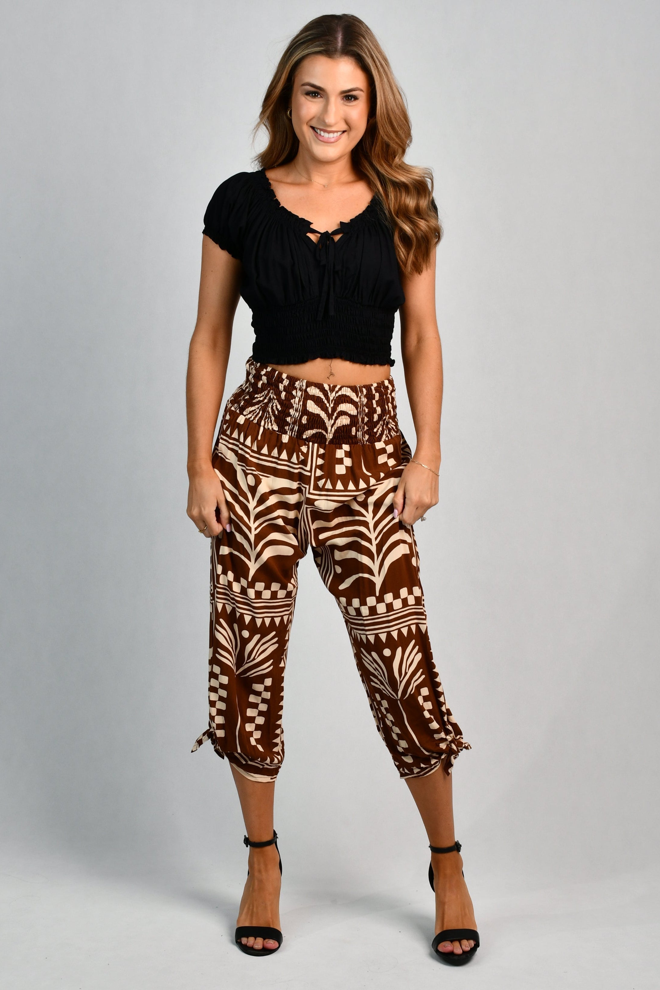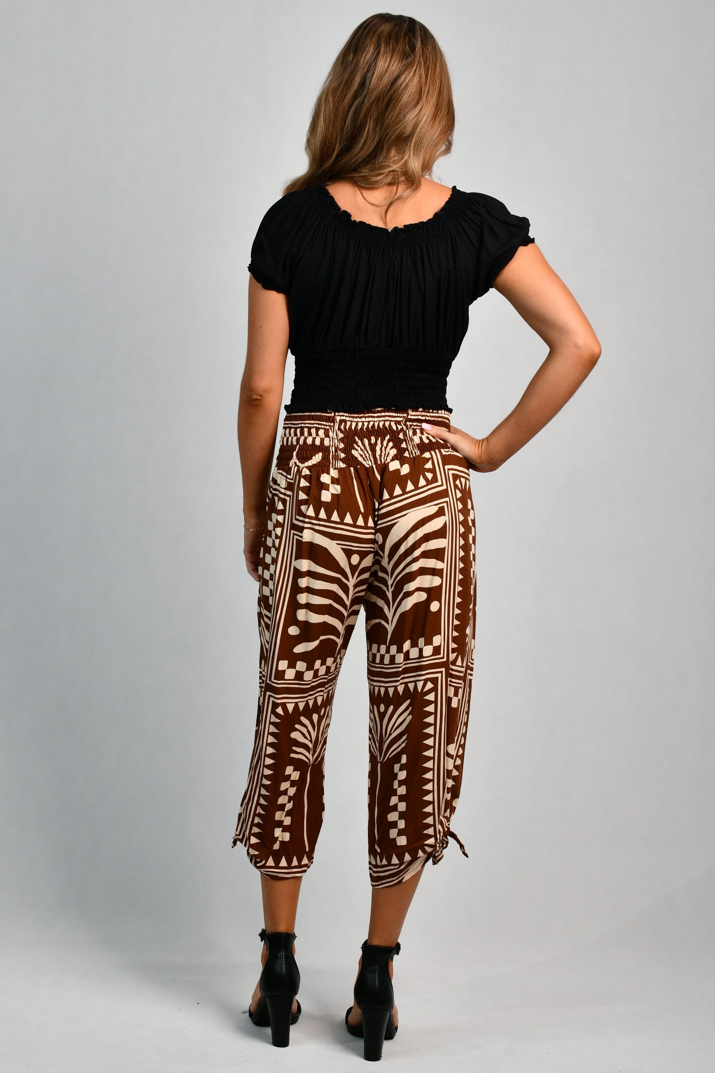 VGLP051 - 3/4 ROUCHED TIE PANTS - TRIBAL ARTISAN BROWN