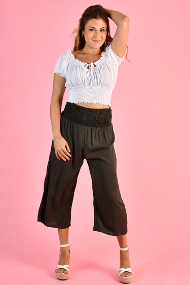 Anyone who has a pair will tell you that they are the comfiest pants around! Made from lightweight Rayon, they feature a stretchy rouched elastic waist and this cut is 3/4 length, straight through. They are quite generous in the sizing and are an absolute must-have wardrobe essential. They are an excellent option for ladies who like cool comfortable clothing, that is easy to coordinate. They are also a favourite of Mums-to-be as the elastic rouching has enough stretch to accommodate a growing tummy.