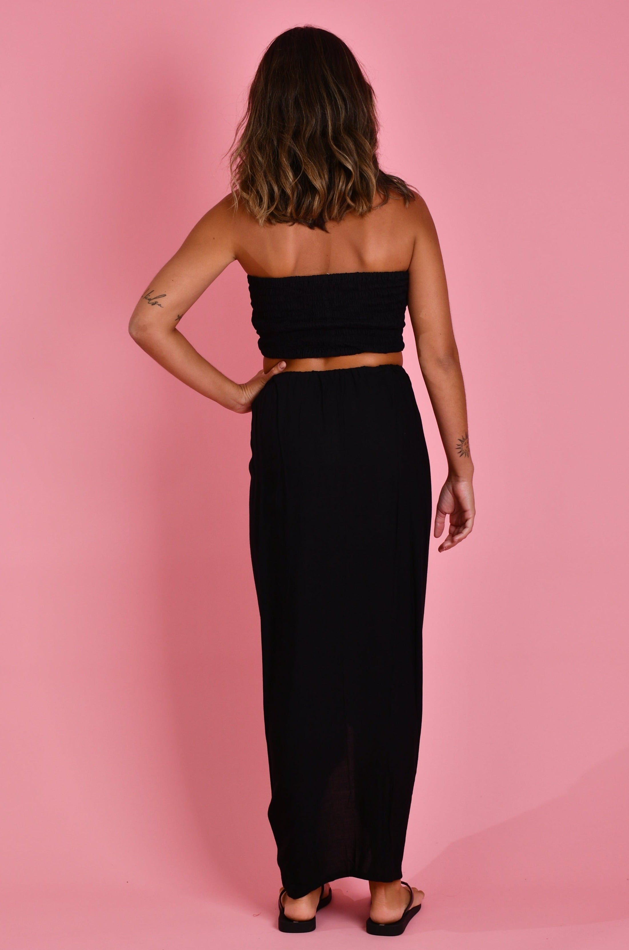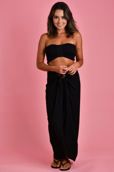 VBLK091 - LONG COCONUT SKIRT W/CLASP - BLACK