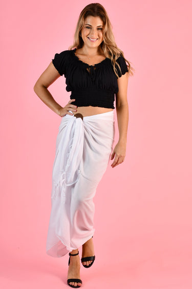 VBLK091 - LONG COCONUT SKIRT W/CLASP - WHITE