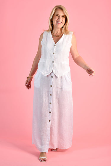 VLSK005 (5354) - VANESSA LINEN SKIRT - WHITE