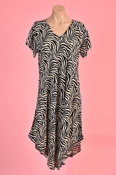 Our Great Harbour Dress is a relaxed fitting piece featuring a high/low curved hemline & a slight V neck.