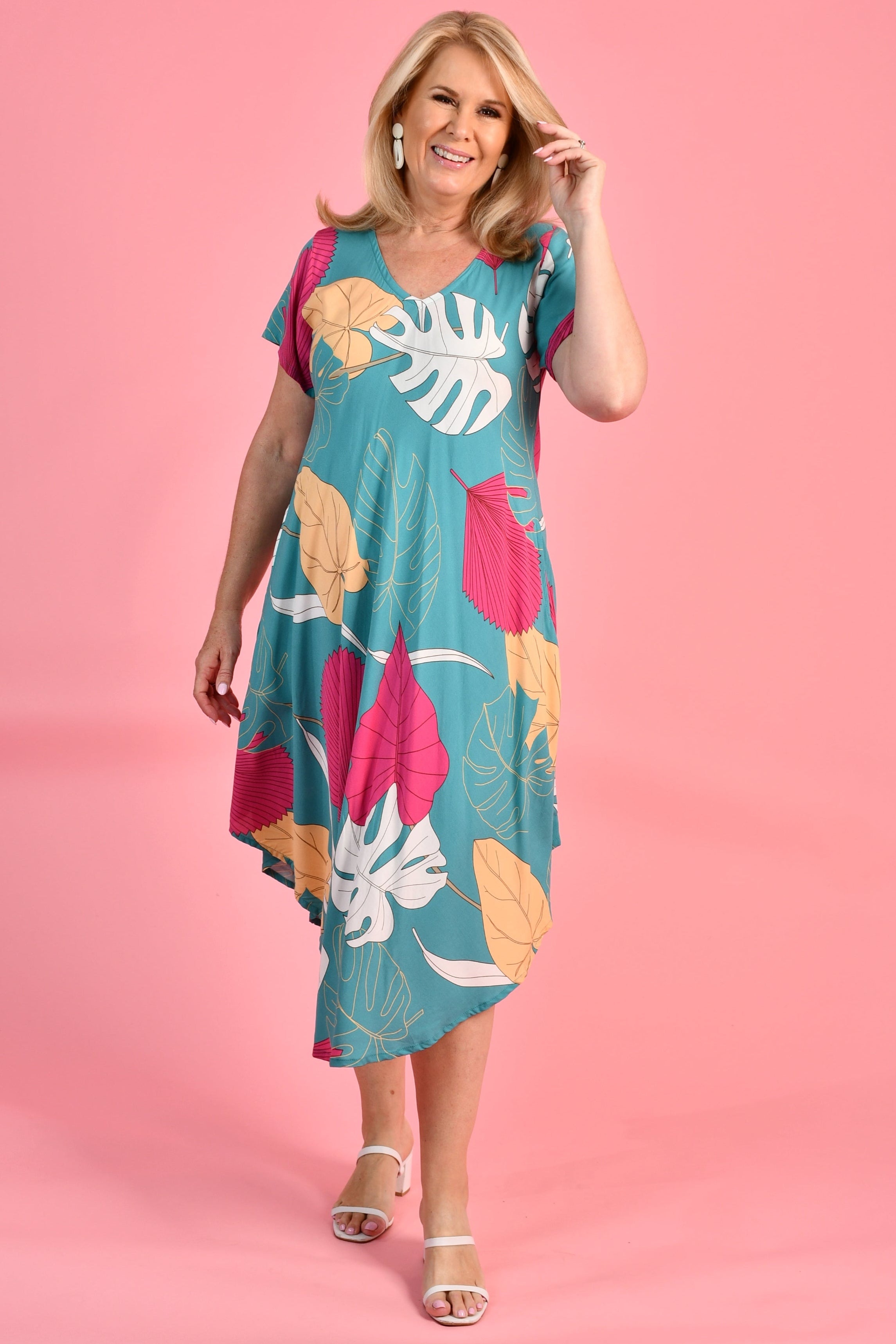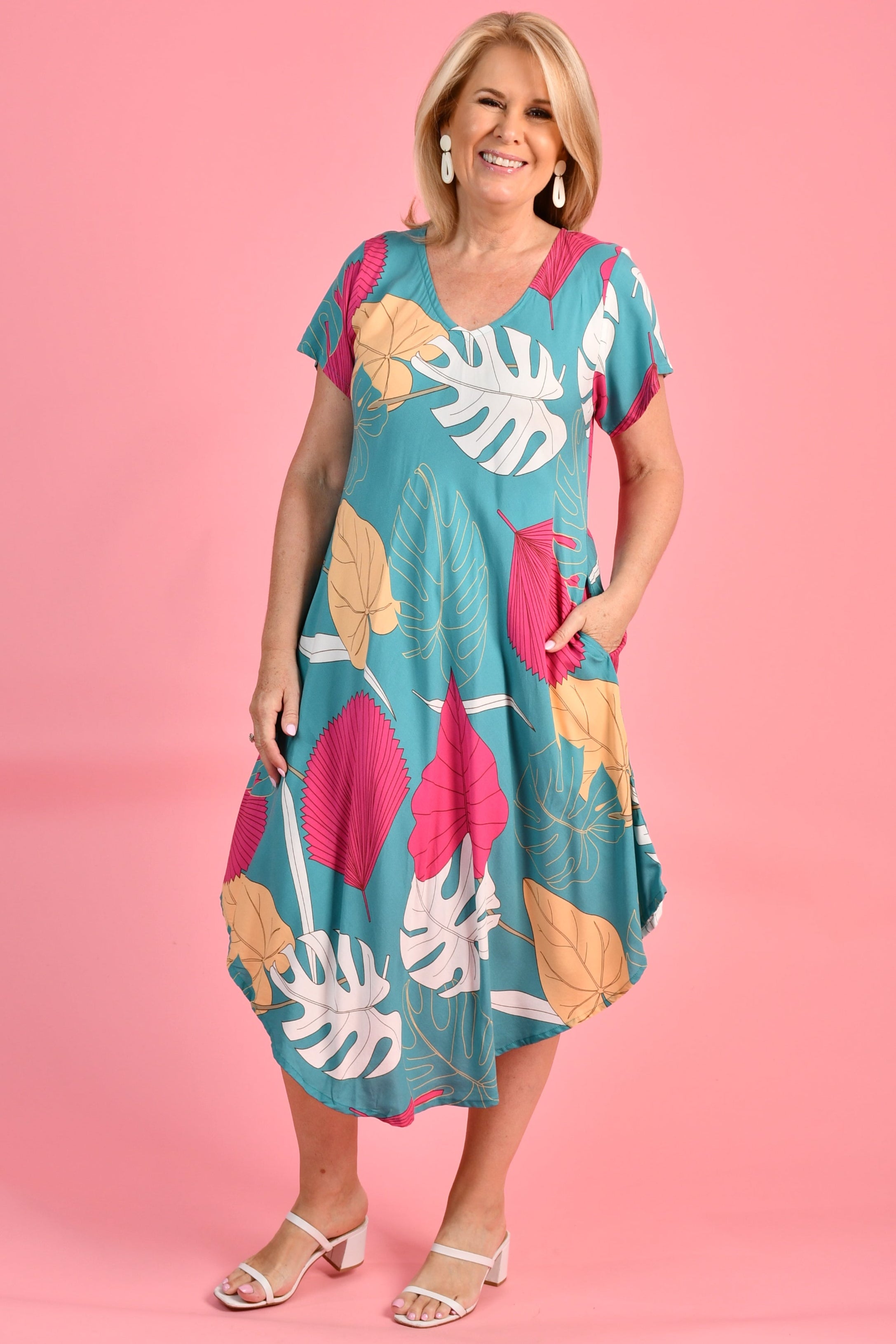 VBLD083 - GREAT HARBOUR DRESS - MAGIC MONSTERA TEAL