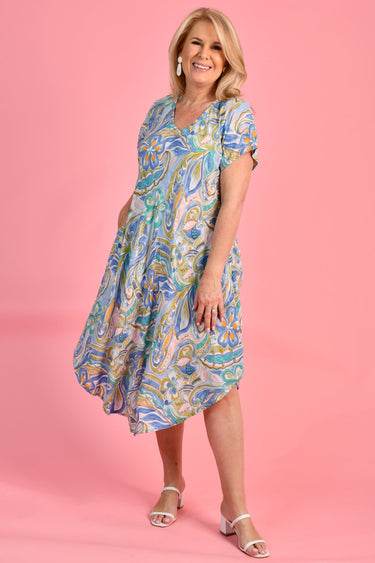 VBLD083 - GREAT HARBOUR DRESS - 70'S SWIRL BLUE